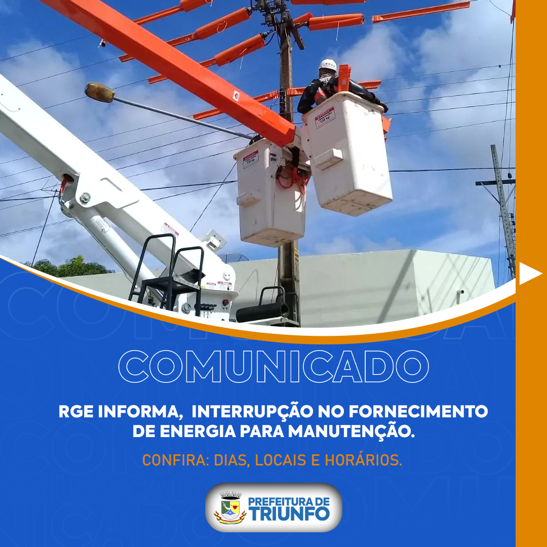 A Prefeitura Municipal comunica a pedido da RGE que a mesma estará fazendo manutenção na rede elétrica.