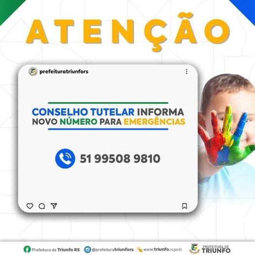 ☎️ O Conselho Tutelar de Triunfo informa novo número para atendimento de emergência.