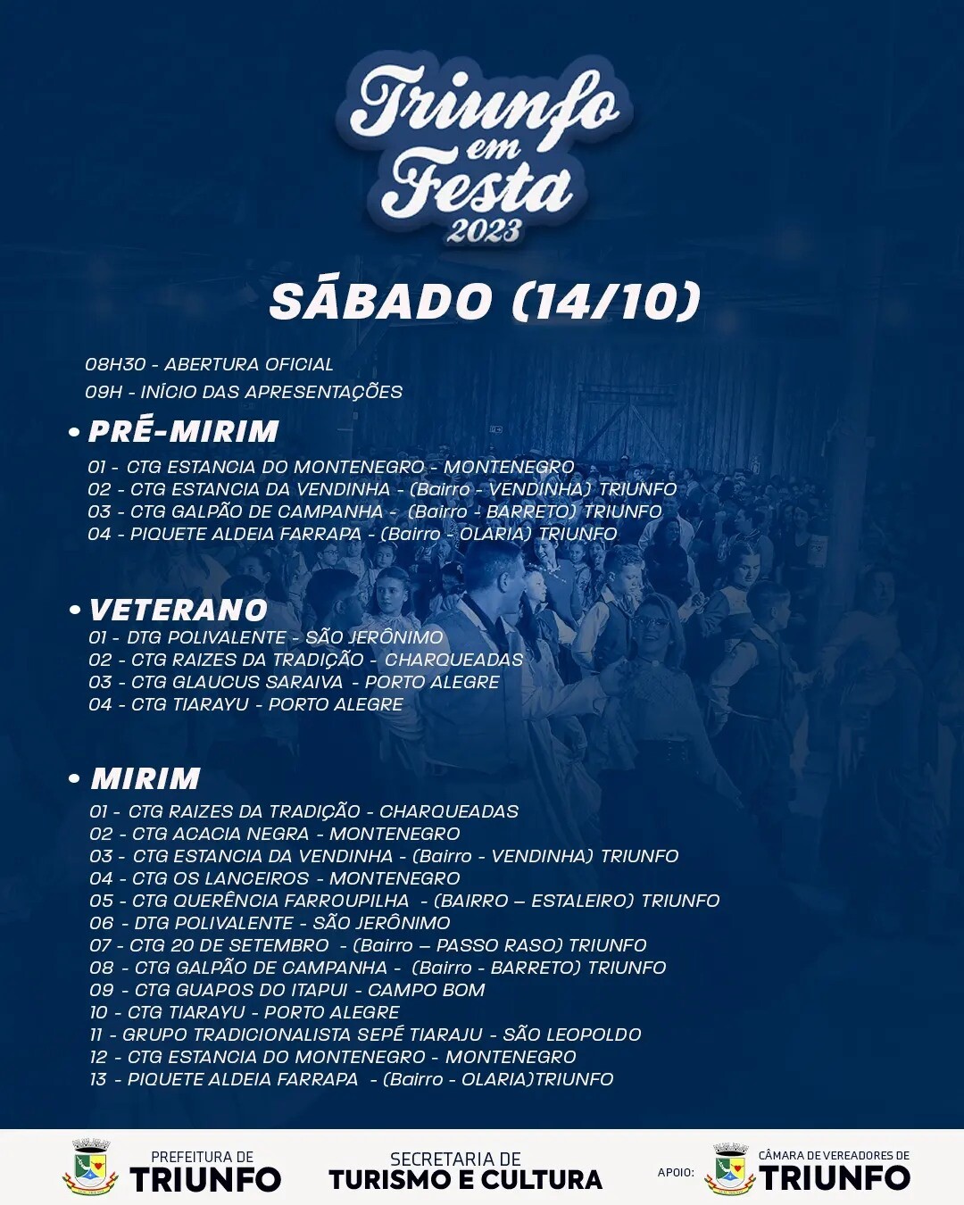E dentro da programação do Triunfo em Festa 2023, teremos as provas da Artística, onde as invernadas realizam apresentações com danças tradicionais de nosso estado.